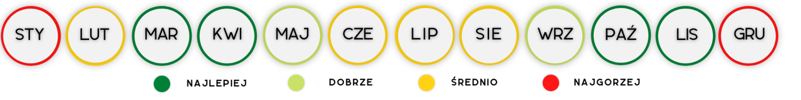 1-5 miesięcy przed wyjazdem (nie pobieramy prowizji, jeżeli bilet kupimy taniej, zwracamy różnicę, jeśli drożej, uczestnik dopłaca różnicę).