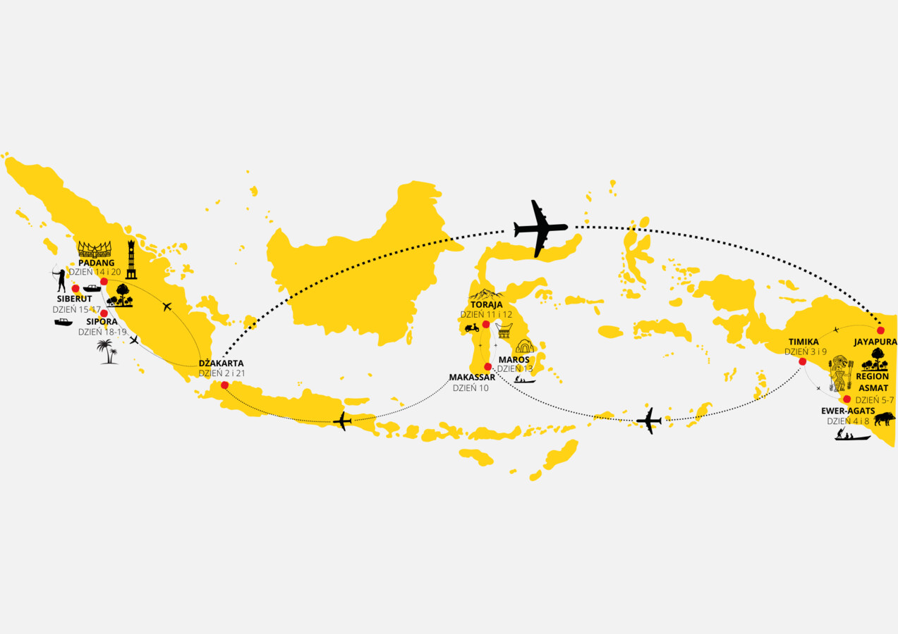 - Tworząc plany kierujemy się zasadą, zobaczenia i doświadczenia jak najwięcej - w przypadku tego programu optymalizujemy loty wewnętrzne, prywatne łódki i przejazdy, żebyście mogli z bliska poznać życie blisko natury oraz kulturę najciekawszych plemion na różnych wyspach Indonezji